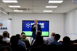 13:23 Governo do Paraná apresenta governança do primeiro Hub de GovTech do Brasil O Governo do Paraná apresentou nesta segunda-feira (26) a governança do Hub GovTech Paraná, iniciativa da Secretaria de Estado da Inovação e Inteligência Artificial (SEIA) que estrutura o modelo institucional e as diretrizes de atuação do que será o primeiro Hub de GovTech do Brasil, voltado ao d