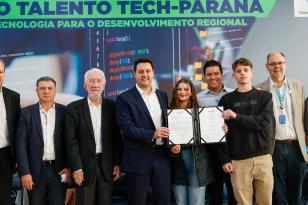 11:00 Selecionados no Talento Tech comemoram acesso a cursos de tecnologia nas próprias cidades O lançamento do Talento Tech nesta terça-feira (11), em Curitiba, contou com a participação de diversos alunos de Ensino Médio e Superior selecionados e que receberão uma das 3 mil bolsas voltadas à realização de cursos de Tecnologia da Informação e Comunicação.