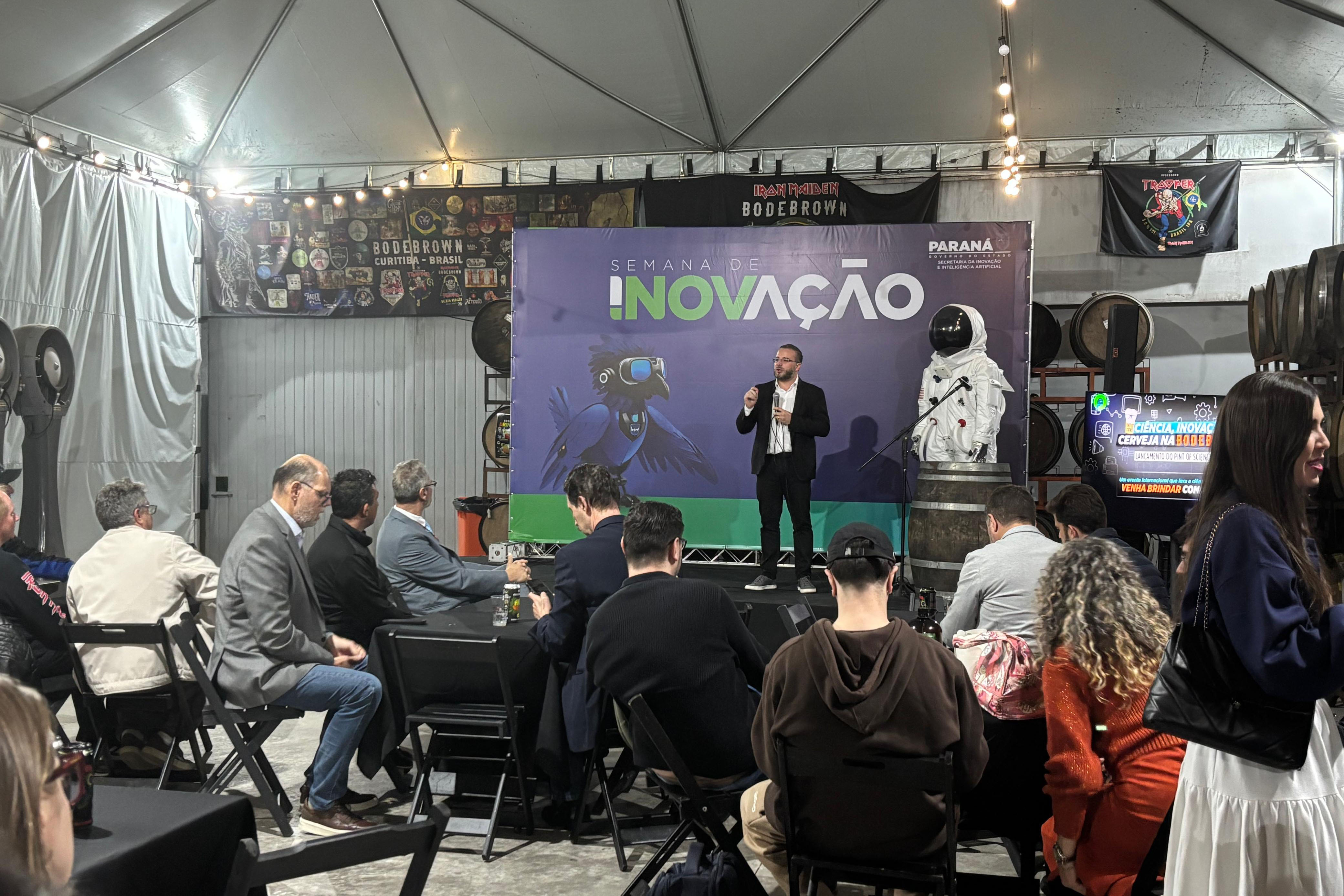 O Governo do Estado, por meio da Secretaria da Inovação e Inteligência Artificial, em parceria com a cervejaria Bodebrown, anunciou a realização do Pint Of Science 2026, festival internacional de divulgação científica em bares e restaurantes. O evento acontece anualmente em 27 países durante o mês de maio. O lançamento foi na noite de quarta-feira (22), na sede da Bodebrown, em Curitiba, com a presença de representantes do ecossistema de inovação do Paraná, servidores e comunidade acadêmica.