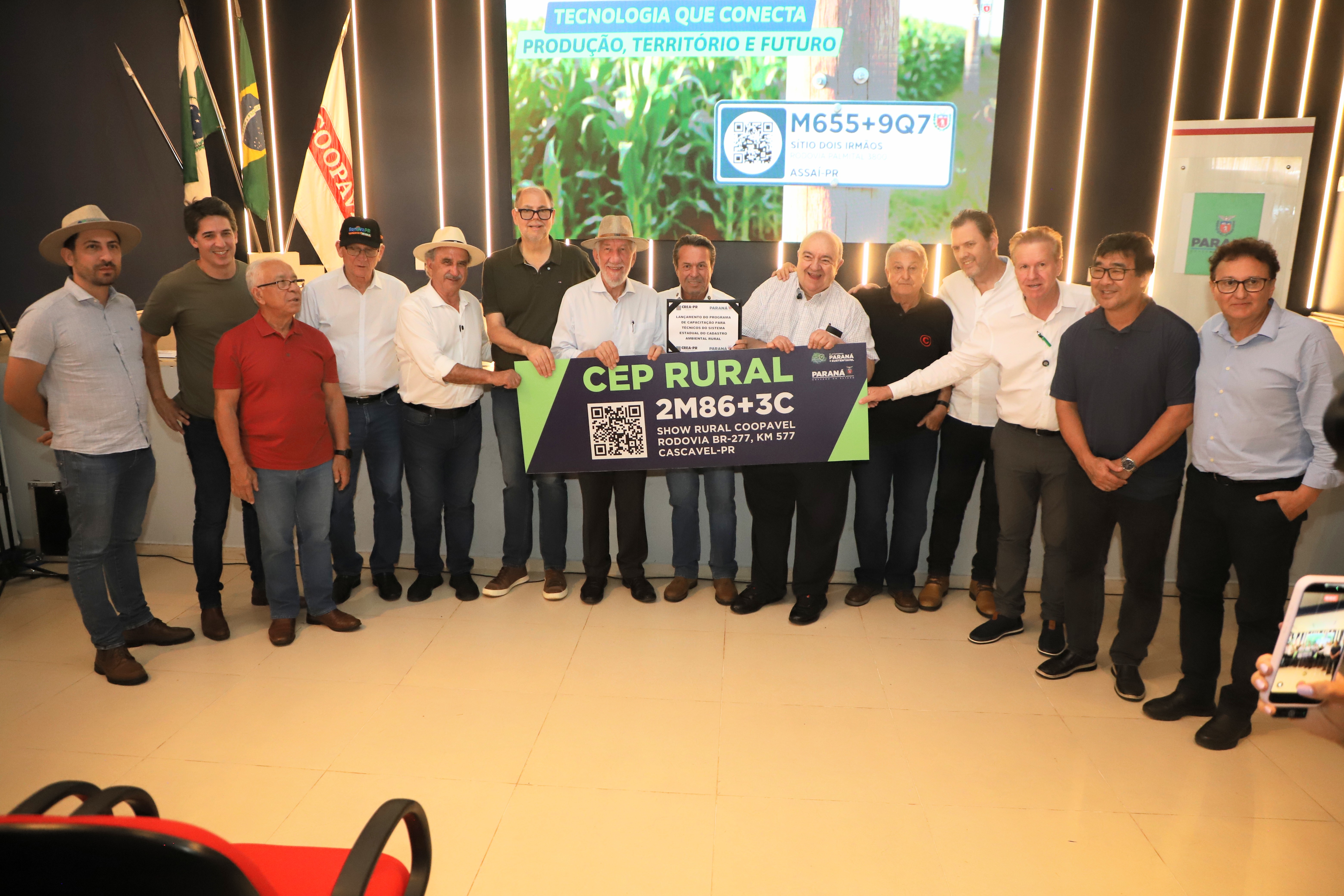 O lançamento oficial contou com a entrega simbólica da primeira placa de CEP Rural do Estado à Coopavel, marcando o registro inaugural do sistema no Paraná. A partir da disponibilização do aplicativo Paraná + Sustentável, o projeto estabelece um modelo de sinalização padronizada que poderá ser adotado pelos proprietários rurais.