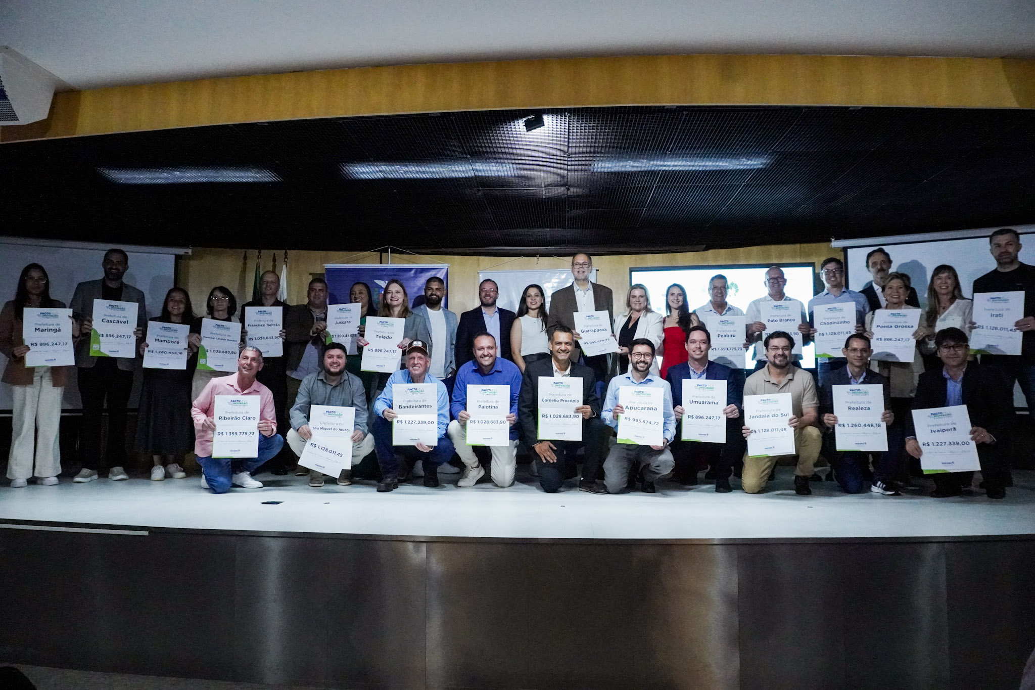 O Governo do Estado, por meio da Secretaria da Inovação e Inteligência Artificial (Seia), repassou nesta quarta-feira (17) R$ 55 milhões para 48 municípios contemplados no Pacto Pela Inovação e Fundo a Fundo. A iniciativa, em parceria com o Tribunal de Contas do Estado (TCE), tem como objetivo descentralizar os investimentos e ampliar a capacidade dos municípios de desenvolver políticas públicas voltadas à tecnologia. O anúncio do investimento foi feito no final de novembro, em evento no Palácio Iguaçu com a presença do governador Carlos Massa Ratinho Junior.