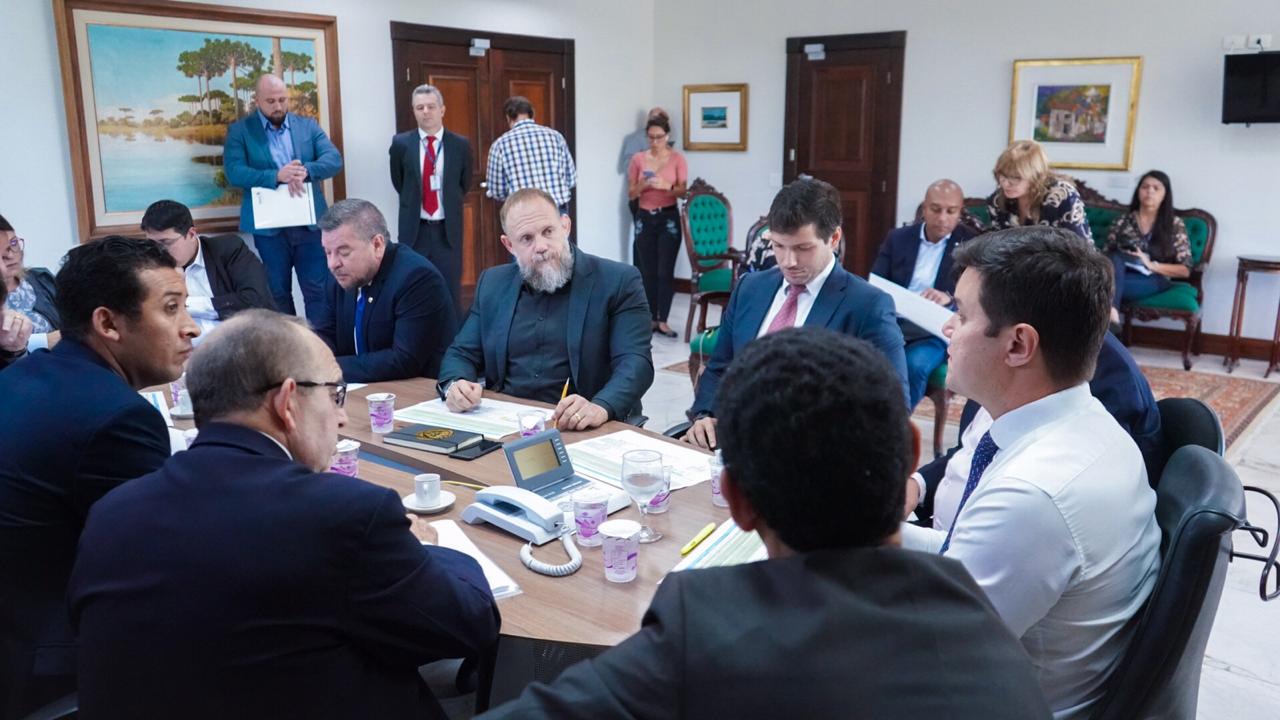 Nesta quarta-feira (04), o chefe da Casa Civil, Guto Silva, o secretário de Estado da Segurança Pública, coronel Rômulo Marinho, e o delegado-geral da Polícia Civil, Silvio Jacob Rockembach, estiveram reunidos com os deputados estaduais Delegado Recalcatti, Delegado Fernando Martins, Delegado Jacovos, Soldado Adriano José, o líder do governo na Assembleia Legislativa, deputado Hussein Bakri, e o relator do Orçamento do Paraná, deputado Tiago Amaral, para debater as propostas.
