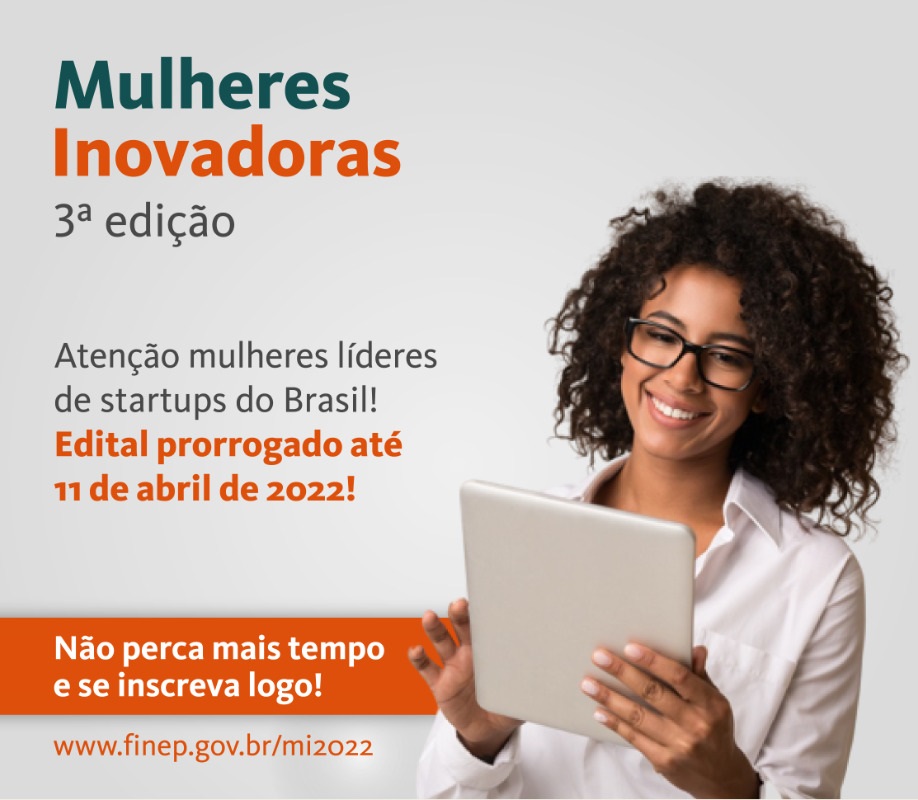 O Programa Mulheres Inovadoras é uma iniciativa da Finep e do Ministério da Ciência, Tecnologia e Inovações (MCTI) para estimular startups lideradas por mulheres, de forma a contribuir para o aumento da representatividade feminina no cenário empreendedor nacional, por meio da capacitação e do reconhecimento de empreendimentos que possam favorecer o incremento da competitividade brasileira