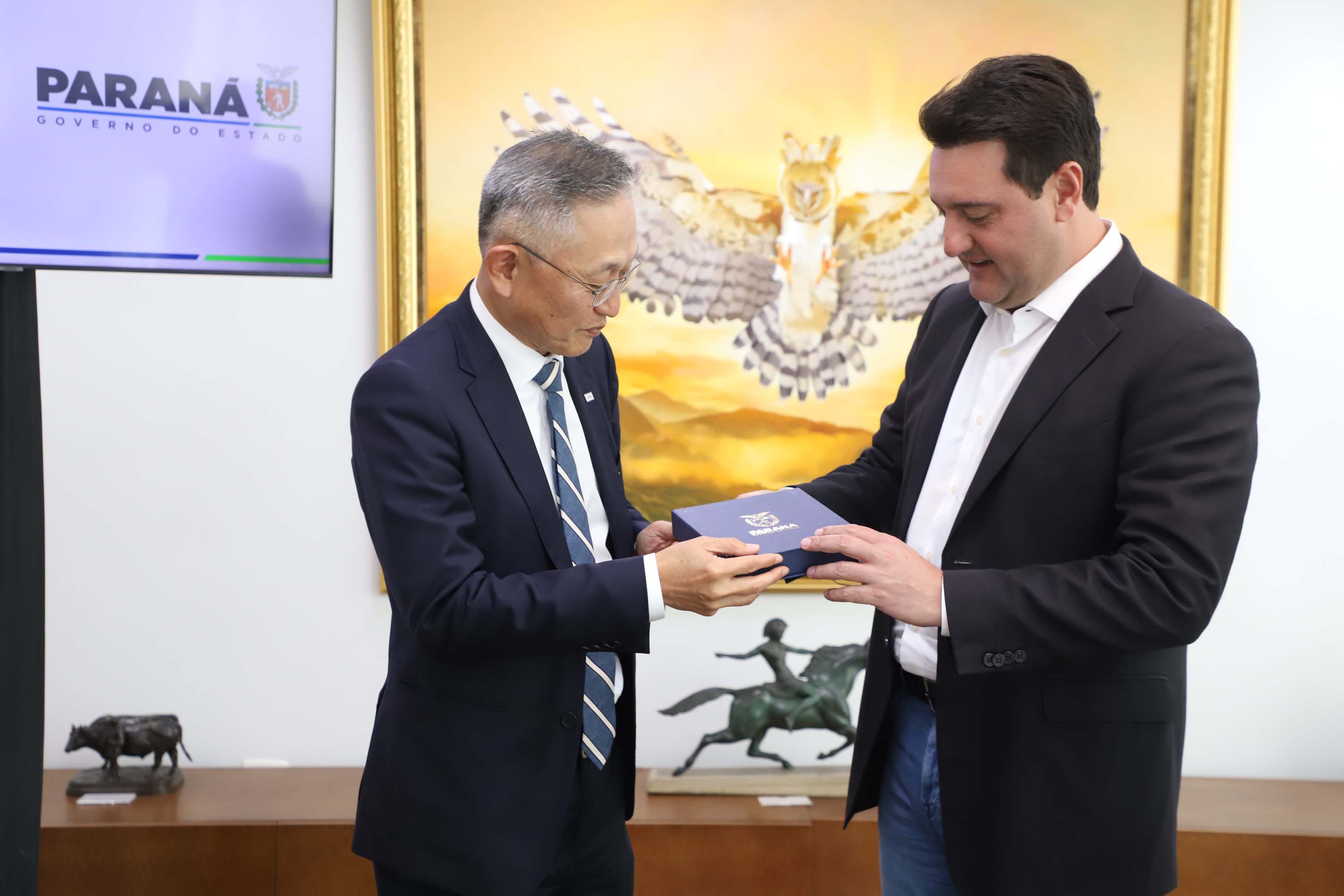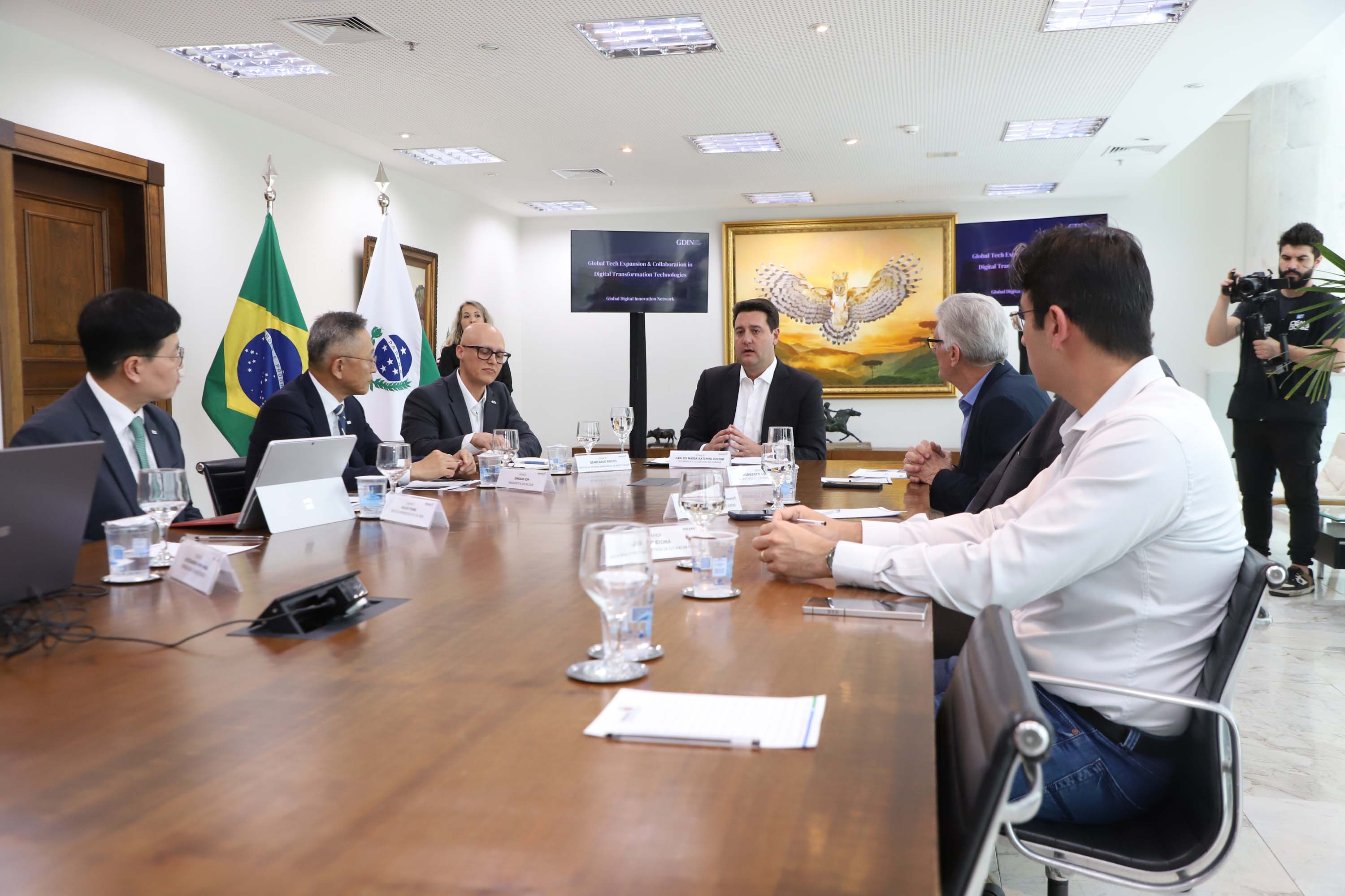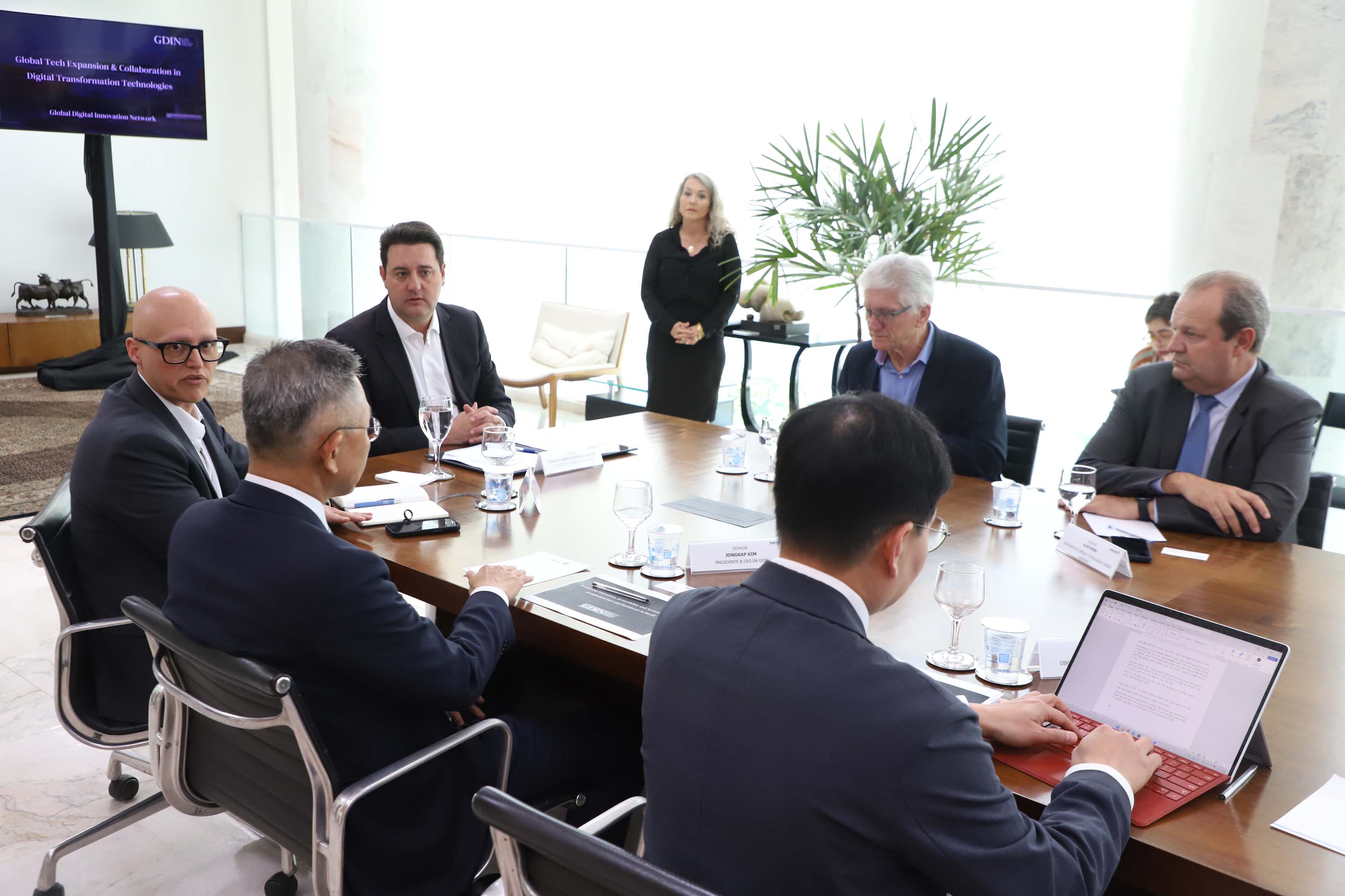 O governador Carlos Massa Ratinho Junior se reuniu nesta quarta-feira (26), no Palácio Iguaçu, com representantes do Global Digital Inovation Network (GDIN), fundação ligada ao Ministério de Ciência e Tecnologia da Informação da Coreia do Sul que é responsável pela implantação do Korean Valley em Ivaiporã, no Vale do Ivaí. O Paraná é o primeiro estado da América Latina a firmar parceria institucional com o GDIN e a sediar um polo oficial do Korean Valley.