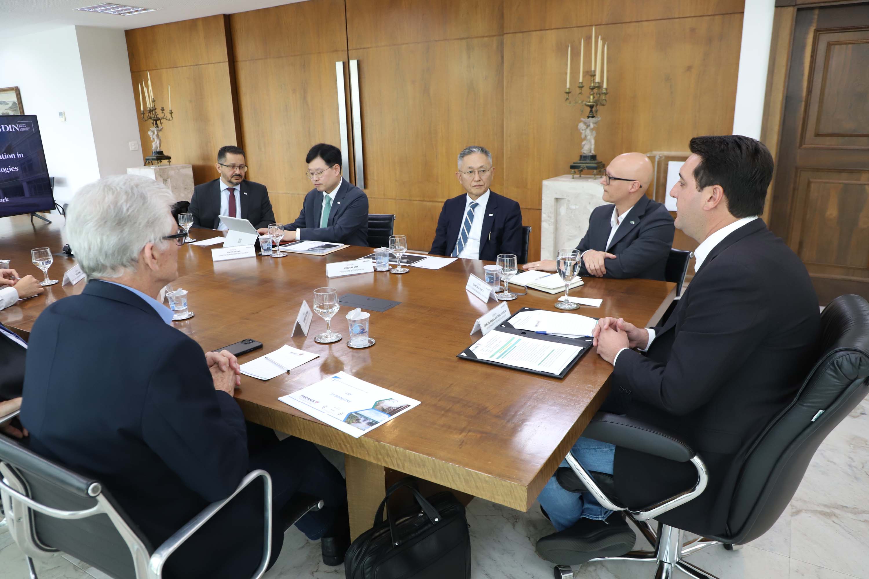 PRESENÇAS – Também acompanharam a agenda os secretários estaduais da Fazenda, Norberto Ortigara; e da Ciência, Tecnologia e Ensino Superior, Aldo Bona; o diretor Administrativo do GDIN, Sokjin Chang; e o diretor-geral da Secretaria de Estado da Educação, João Giona.
