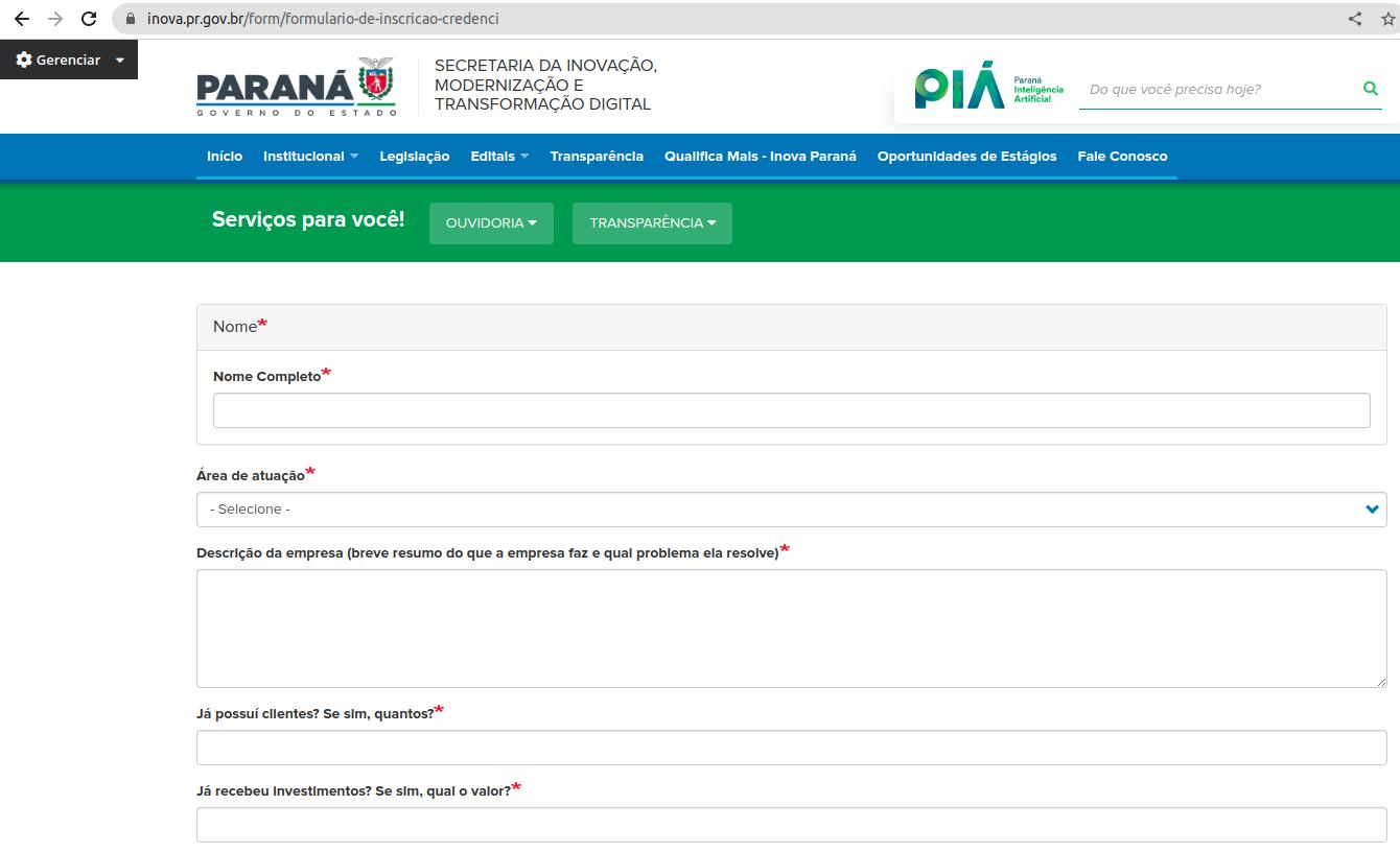 A Secretaria Estadual da Inovação, Modernização e Transformações Digital (SEI), anunciou a realização de um chamamento público para seleção de empresas interessadas em participar de eventos no Estado do Paraná, pela Secretaria. A iniciativa tem como objetivo a seleção de pessoas jurídicas, motivado na celebração de Termo de Responsabilidade realizado com a Administração Pública Estadual Direta, para expor serviços e produtos inovadores, mesmo que em teste inicial a protótipos.