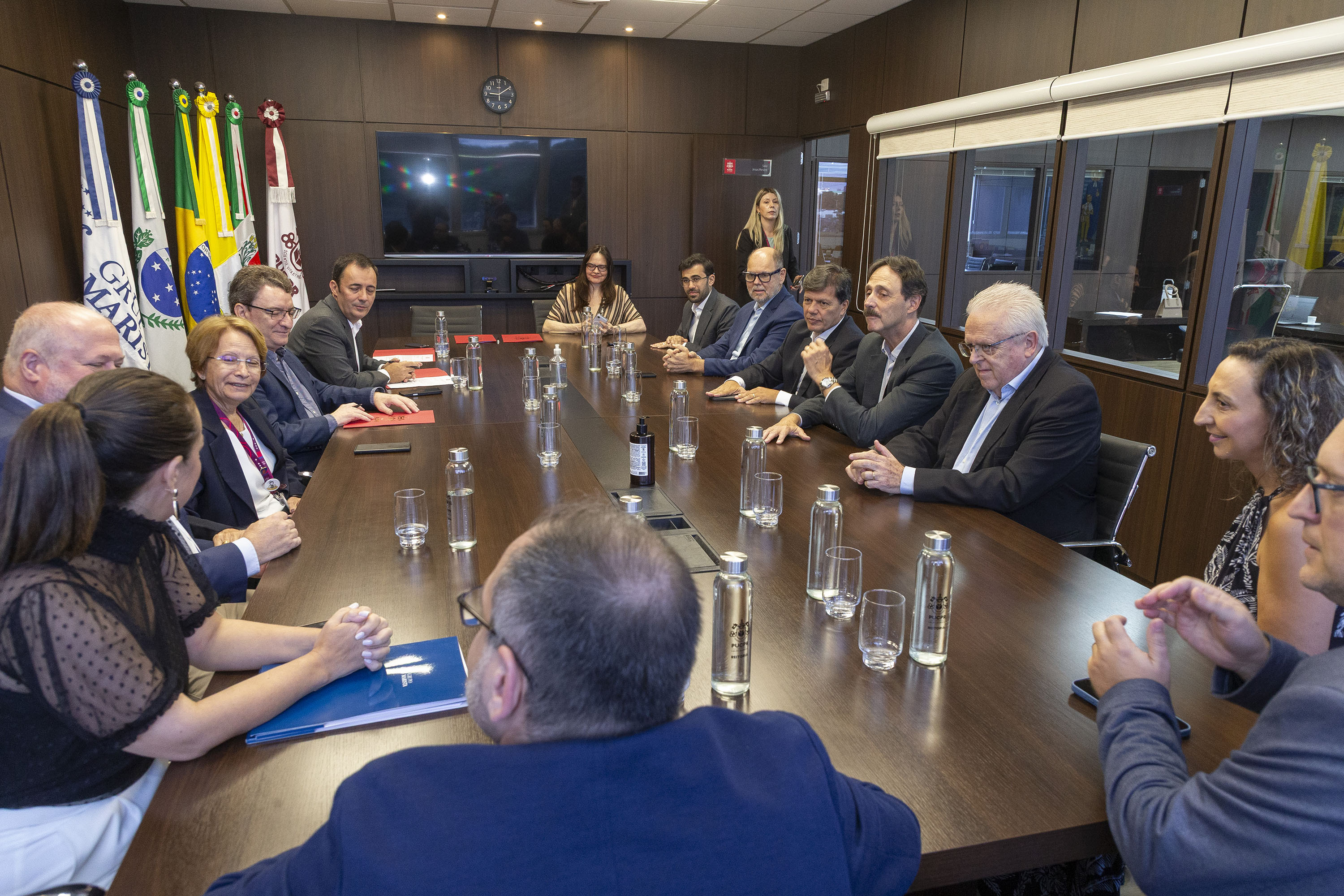 PRESENÇAS – Estiveram presentes no evento os diretores do Tecpar Lanes Randal Prates Marques (Tecnologia e Inovação), Celso Kloss (Novos Negócios e Relações Institucionais) e Erland Manys (Administração e Finanças); a procuradora jurídica, Adrianne Correia; o diretor-geral da Seia, Marcos Vitorio Stamm; ao vice-reitor da PUCPR, Vidal Martins; e as pró-reitoras Paula Cristina Trevilatto (Pesquisa, Pós-Graduação e Inovação) e Andreia Malucelli (Operações Acadêmicas).